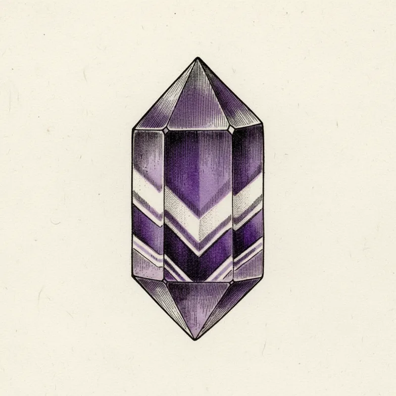 Chevron amethyst is a modern trade name, popularized in the 1970s lapidary market, that blends older Greek and Roman traditions around amethyst as a stone of clarity with newer metaphysical associations tied to the white quartz component. Contemporary crystal healing culture frames it as a stone that pairs the purifying symbolism of milky quartz with the introspective symbolism of amethyst, and it is often called Dream Amethyst in English-language shops for its association with dream recall journaling practices. Historical sources do not distinguish chevron material from other amethyst in ancient use.