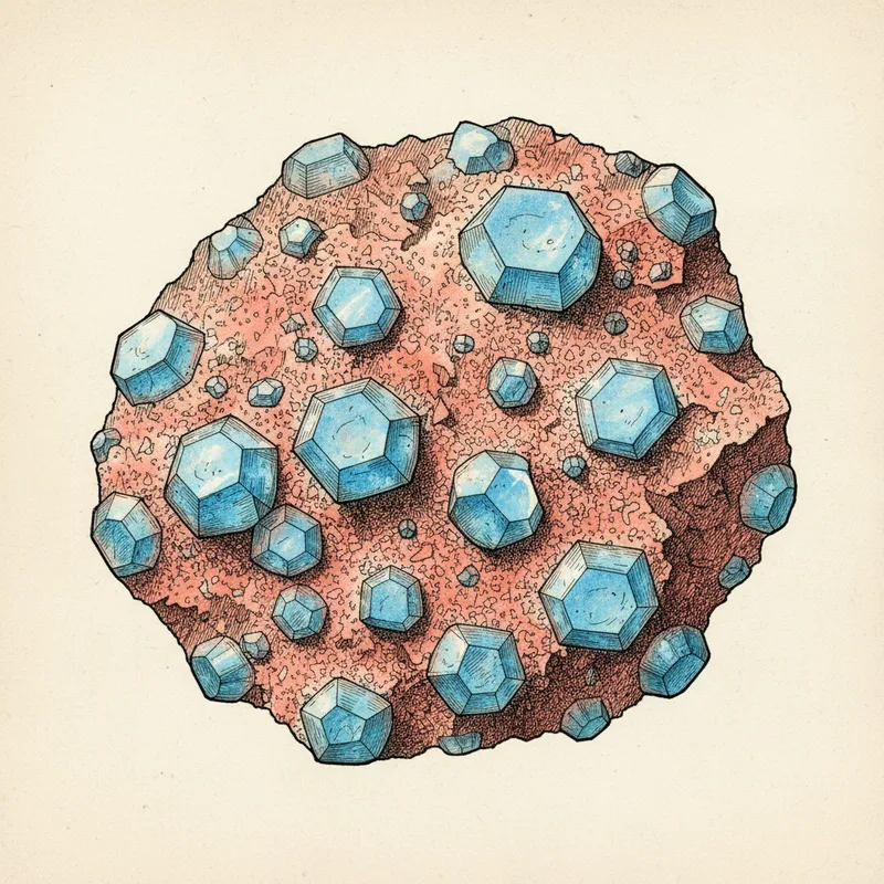 Outright fakes are uncommon because llanite is affordable enough that synthesis is not economical. The most frequent confusion is with other porphyritic rocks that also carry colored phenocrysts. Unakite, for instance, combines pink feldspar with green epidote rather than blue quartz and has no hexagonal outlines in the colored grains. Some Scandinavian rhomb porphyries show pink feldspar phenocrysts in a dark matrix and are sometimes mislabeled. Look for true hexagonal cross sections of the blue grains, a matrix that is pink rather than dark gray or green, and the consistent small size range of the phenocrysts. If the blue inclusions are round, irregular, or obviously dyed, the piece is not genuine llanite. Provenance is also a reasonable check, since the Llano County quarries are the dominant source and reputable dealers will cite them.