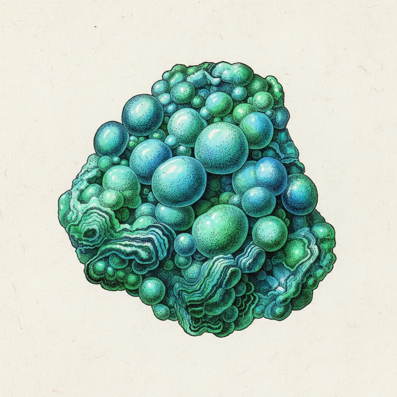 The Onganja deposit began as primary copper sulfides. Over millions of years, oxygenated groundwater percolated through fractured host rock and attacked these sulfides, releasing copper ions into solution. As these copper-rich fluids moved through silica-bearing country rock and encountered carbonates, they precipitated multiple copper minerals nearly simultaneously in tight spatial association.