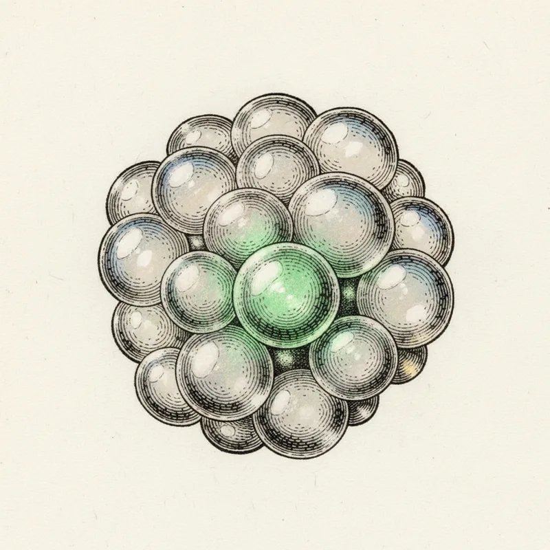 The characteristic botryoidal (grape-like) habit forms because silica deposition occurs preferentially on existing nucleation points. Each small bump on the rock surface acts as a seed for a growing silica dome, and successive layers of deposition build up the rounded, globular forms that make hyalite visually distinctive. The water content typically ranges from 3 to 8 percent by weight, trapped within the amorphous silica network.