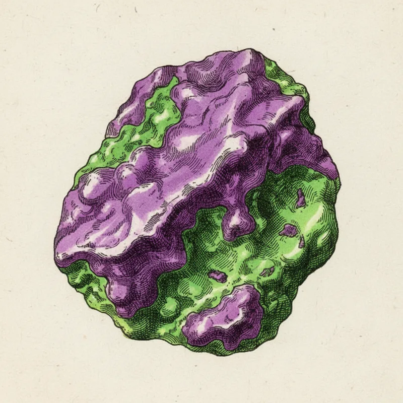 Aboriginal Tasmanian traditions associate the purple-and-green atlantisite combination with the land's spiritual energy. In modern crystal practice, stichtite is considered a stone of emotional resilience and compassion. Crystal healers place it on the heart chakra to encourage forgiveness and emotional release. The combination of stichtite with serpentine in atlantisite is said to unite the heart and crown chakras, bridging emotional and spiritual awareness. Named after Robert Carl Sticht, a metallurgist and mine manager at Tasmania's Mt. Lyell Mining Company in 1910.